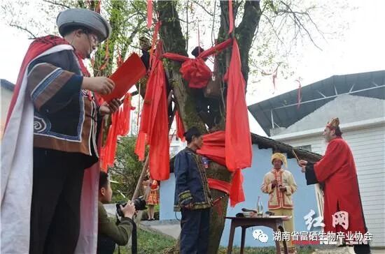 3月30日一大早,媒体采风团一行来到慈利县江垭林场,现场观摩感受杜仲王雄花采摘、制作的古法工艺。按照当地制茶传统习俗,采摘前举行了祭祀仪式。上午9时许, 一声声大锣敲响,伴随着舞龙人的呼喊,一场感恩自然、古朴的祭祀仪式正式上演。随后,身着传统民族服饰的小伙子爬上杜仲树,现场向媒体展示采摘杜仲雄花的全过程。