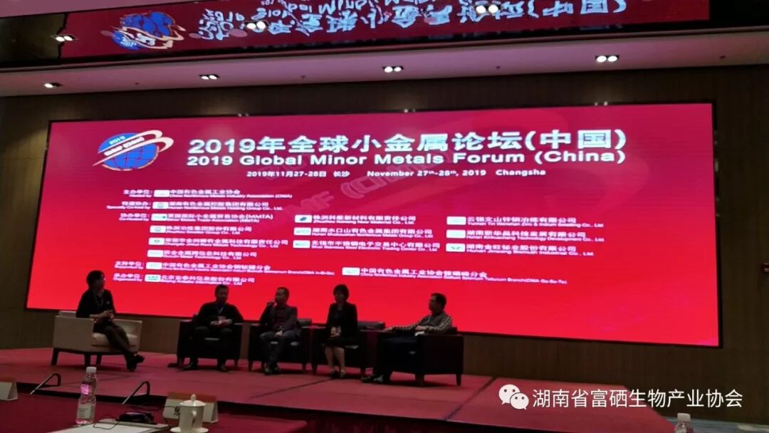 2019年11月28日 ,“2019全球小金属论坛(中国)”在湖南省长沙市中建万怡酒店召开,论坛以“小金属材料技术发展与应用”为主题,国家相关部委、中国有色金属工业协会等有关部门领导;国内外小金属生产企业、贸易商、用户,科研院所科技人员,资产管理和投资机构相关人员,行业代表等300余人参与了本次会议。湖南省富硒生物产业协会执行会长兼秘书长杨俊应邀出席会议并发言。